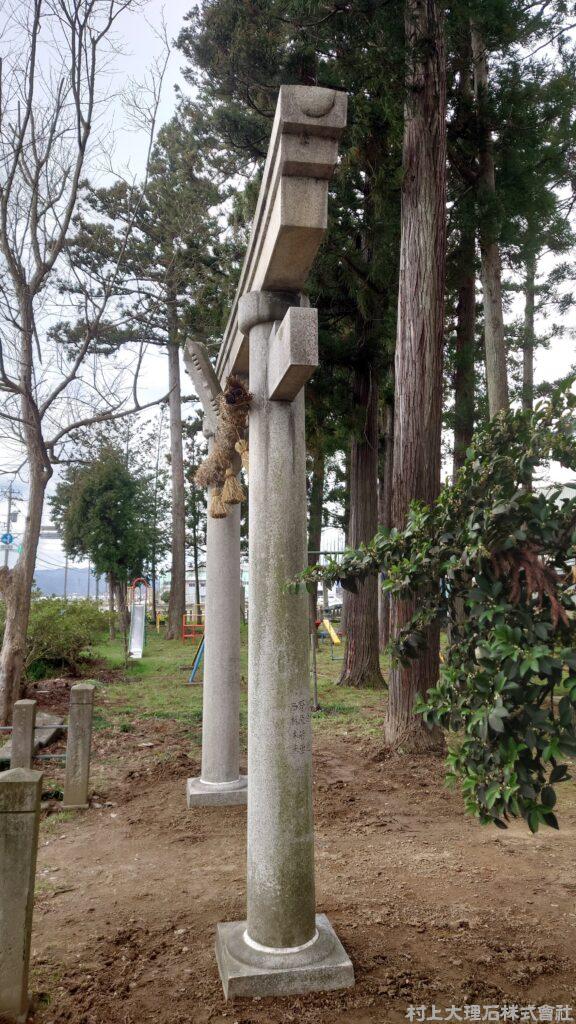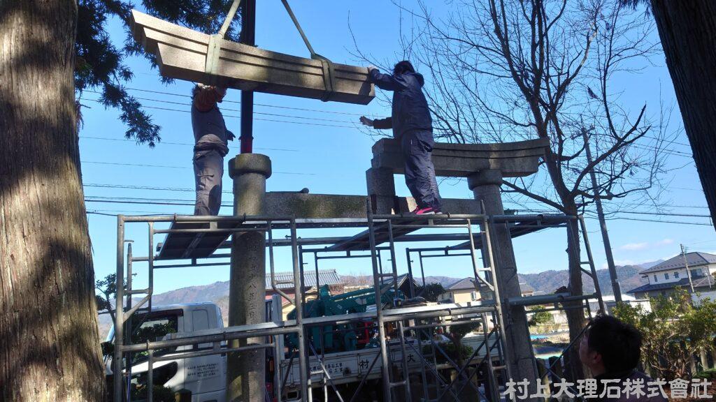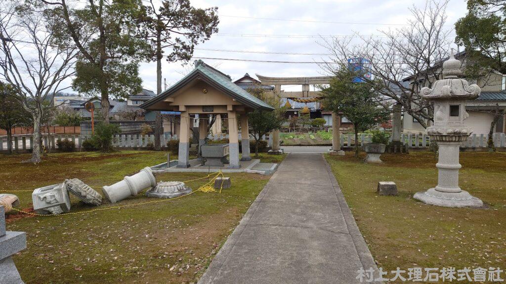 今回の地震で倒れることはなかったのですが、着工前は鳥居が3度ほど前に傾いていました。