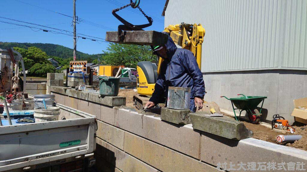 実際には石垣に影響はなかったのですが、今後も考え、石垣の段数を減らしたいとのことで、小判と1段を撤去し、笠石を戻して、高さを低くしました。